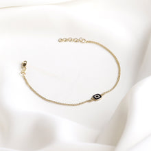 A simple design with a bold meaning. This 14k gold double chain evil eye bracelet is all about keeping the positive energy in, and negative energy out. Worn on its own for a clean and minimal look or stacked with other bracelets- no matter how you style it, it is guaranteed to be a staple in your collection!