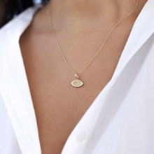 • Load image into Gallery viewer, 14K Gold Diamond Eye Necklace, Eye with Eyelashes Pendant, Protective Jewelry, Diamond Eye Charm, Spiritual Protection Jewelry