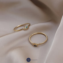 A fun twist on the classic evil eye design- this beautiful 14k gold ring features a minimal and modern evil eye, with a turquoise or navy enamel center. This unique ring looks gorgeous on its own but also stacks perfectly with other rings. This ring is the perfect gift or special treat for yourself!