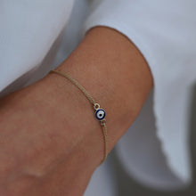 A simple design with a bold meaning. This 14k gold double chain evil eye bracelet is all about keeping the positive energy in, and negative energy out. Worn on its own for a clean and minimal look or stacked with other bracelets- no matter how you style it, it is guaranteed to be a staple in your collection!