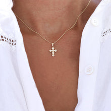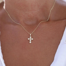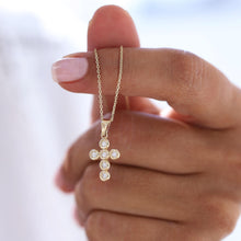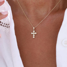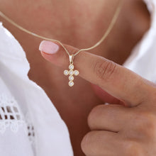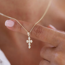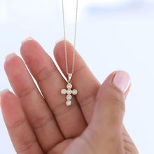 • Load image into Gallery viewer, 14K Real Gold Diamond Cross Medium Necklace,Gold Religious Necklace,Christian Faith Pendant,Round Framed Necklace, Diamond Gemstone