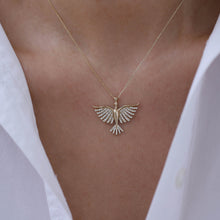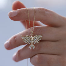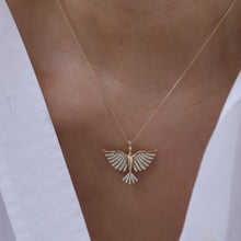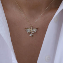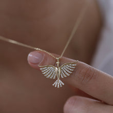 • Load image into Gallery viewer, Large Diamond Phoenix Bird Necklace, Fire Bird Necklace, Simurgh Pendant, Good Luck Charm, 14K Gold Chain, Gift for Her, Mythical Jewelry